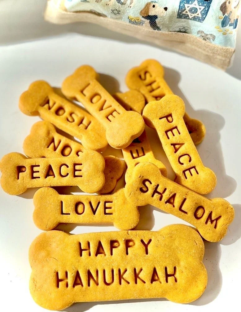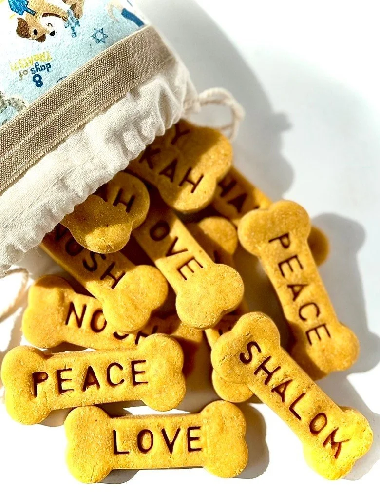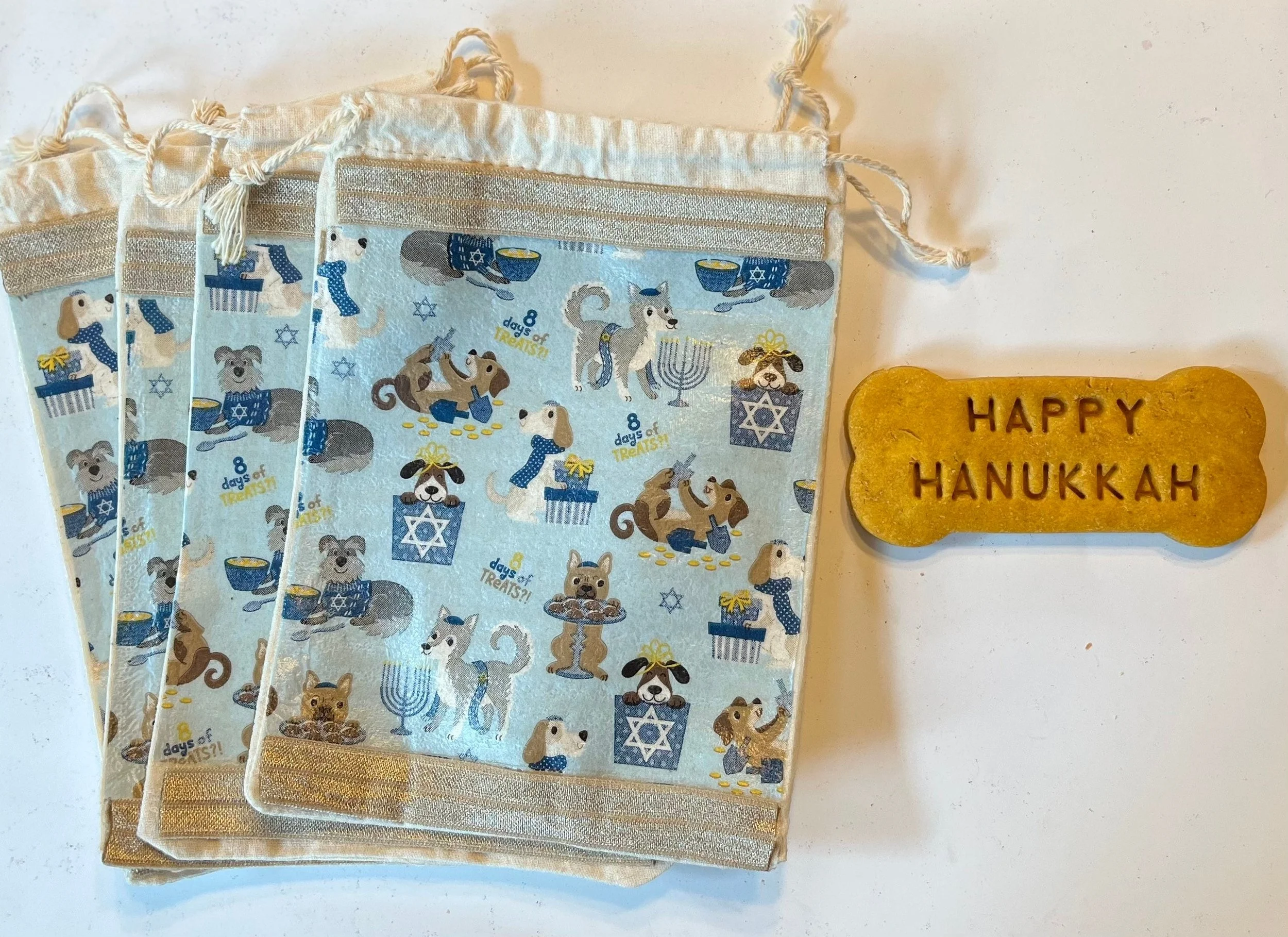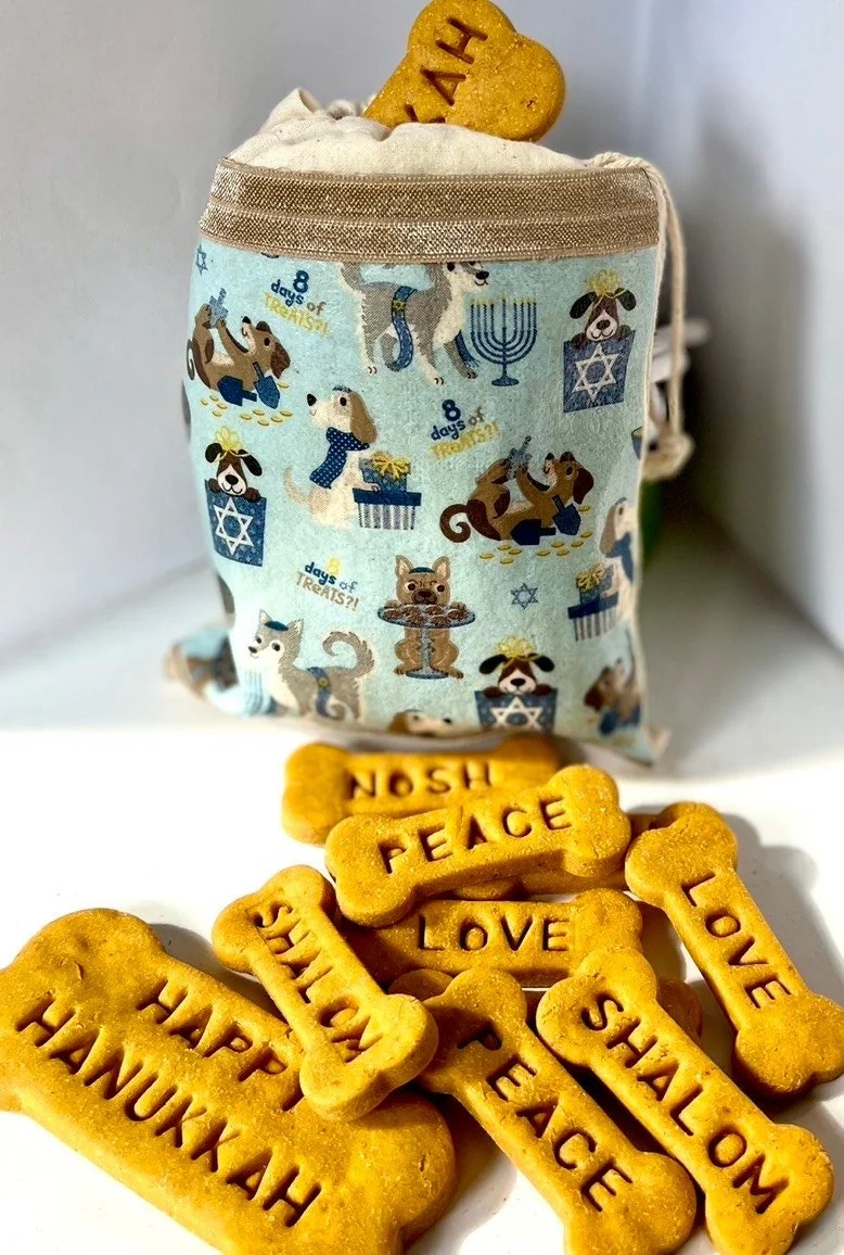 Happy Chanukah! While Hanukkah lights find you together with loved ones don't forget to celebrate with your dog! Grab a Hanukkah gift bag filled with personalized dog treats.