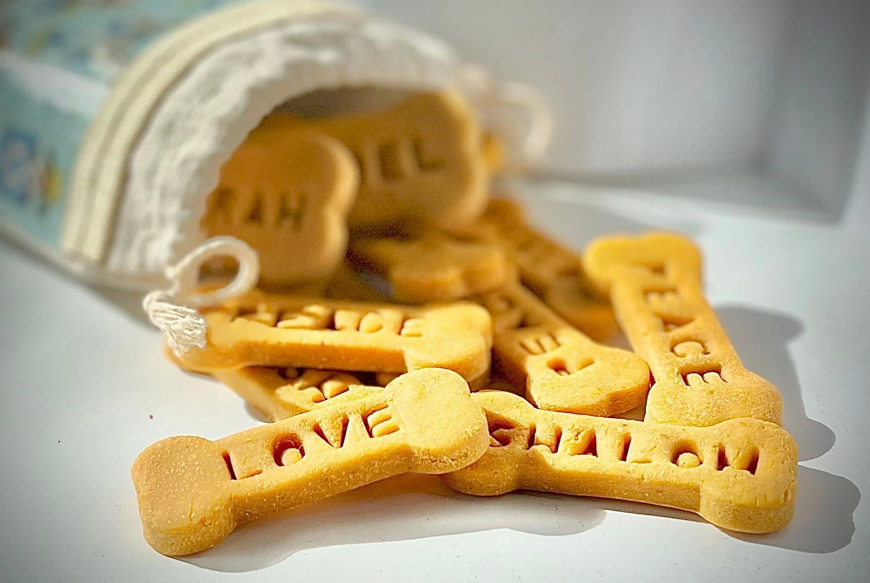 Each bag will hold up to 23 personalized small bones or a mix of small and medium bones up to 7 oz. The bones will be made to order so you are guaranteed fresh dog treats for your pup.