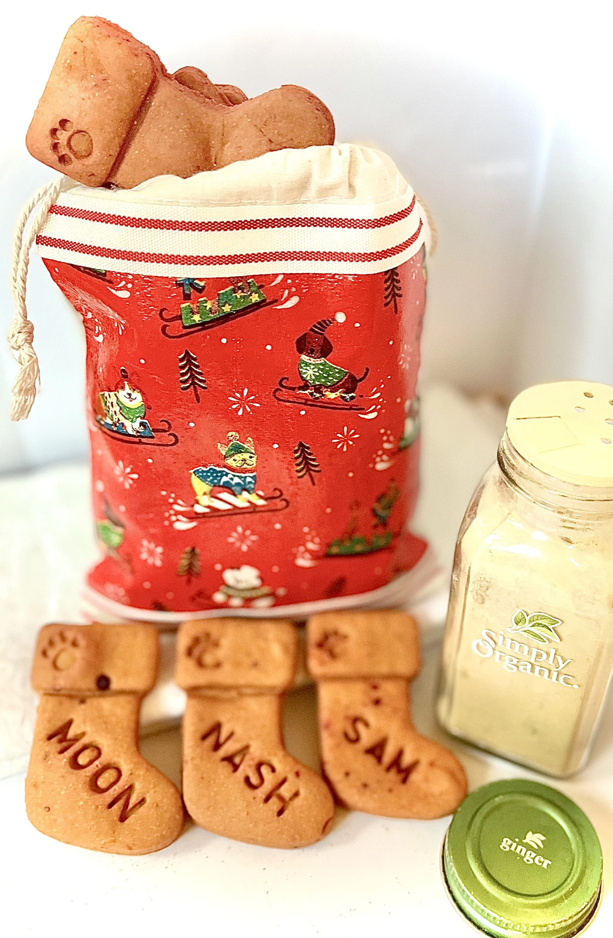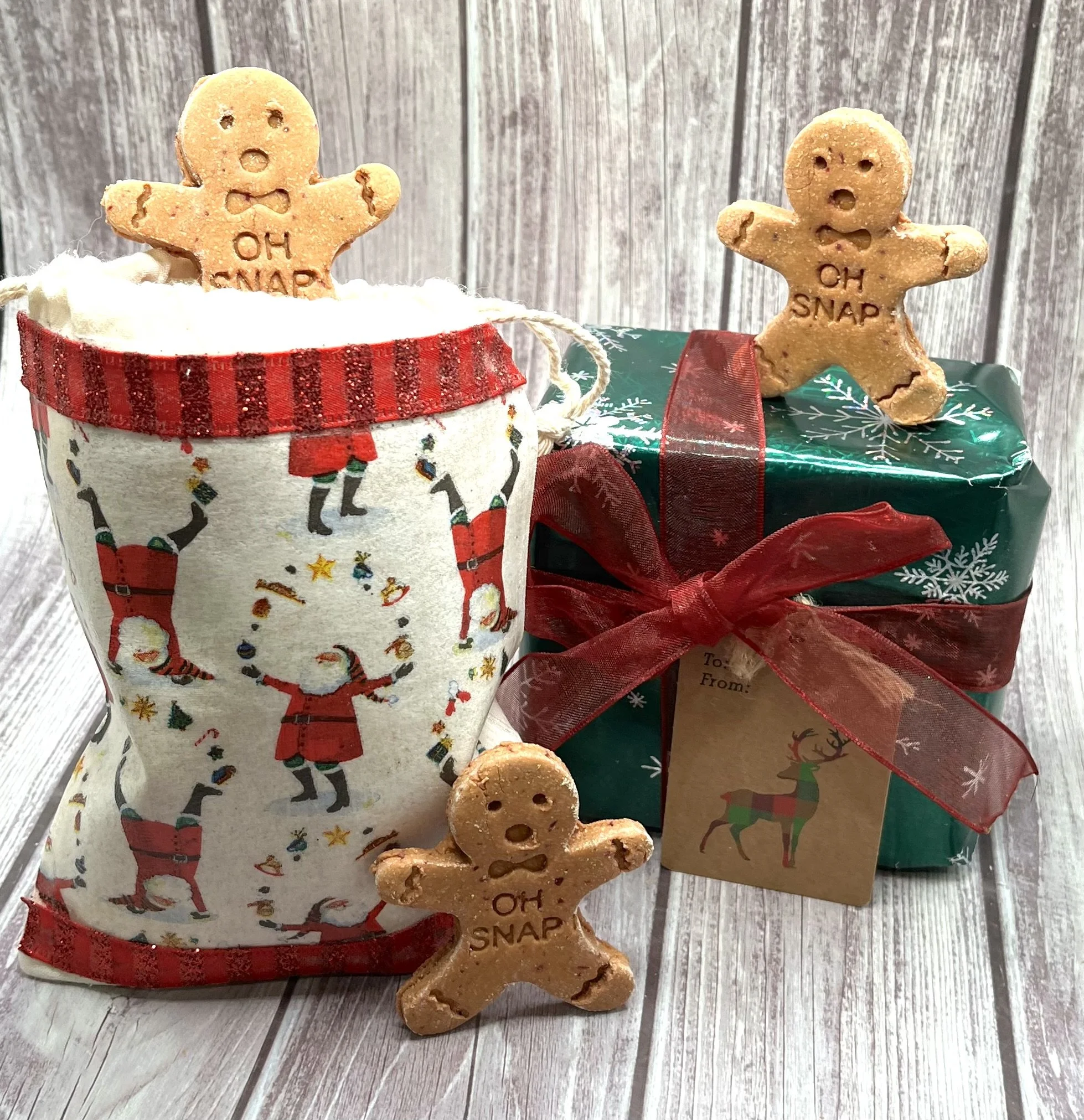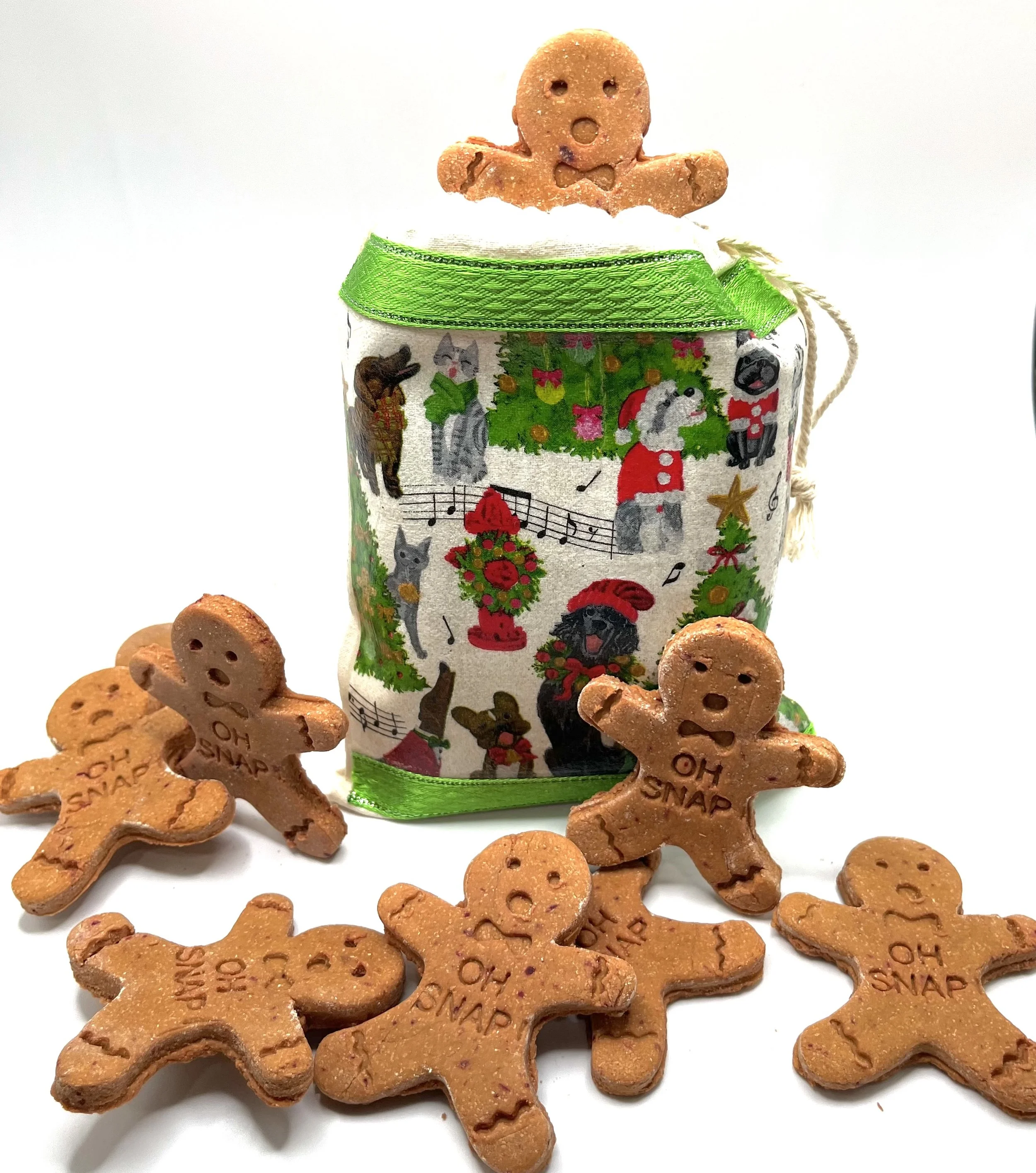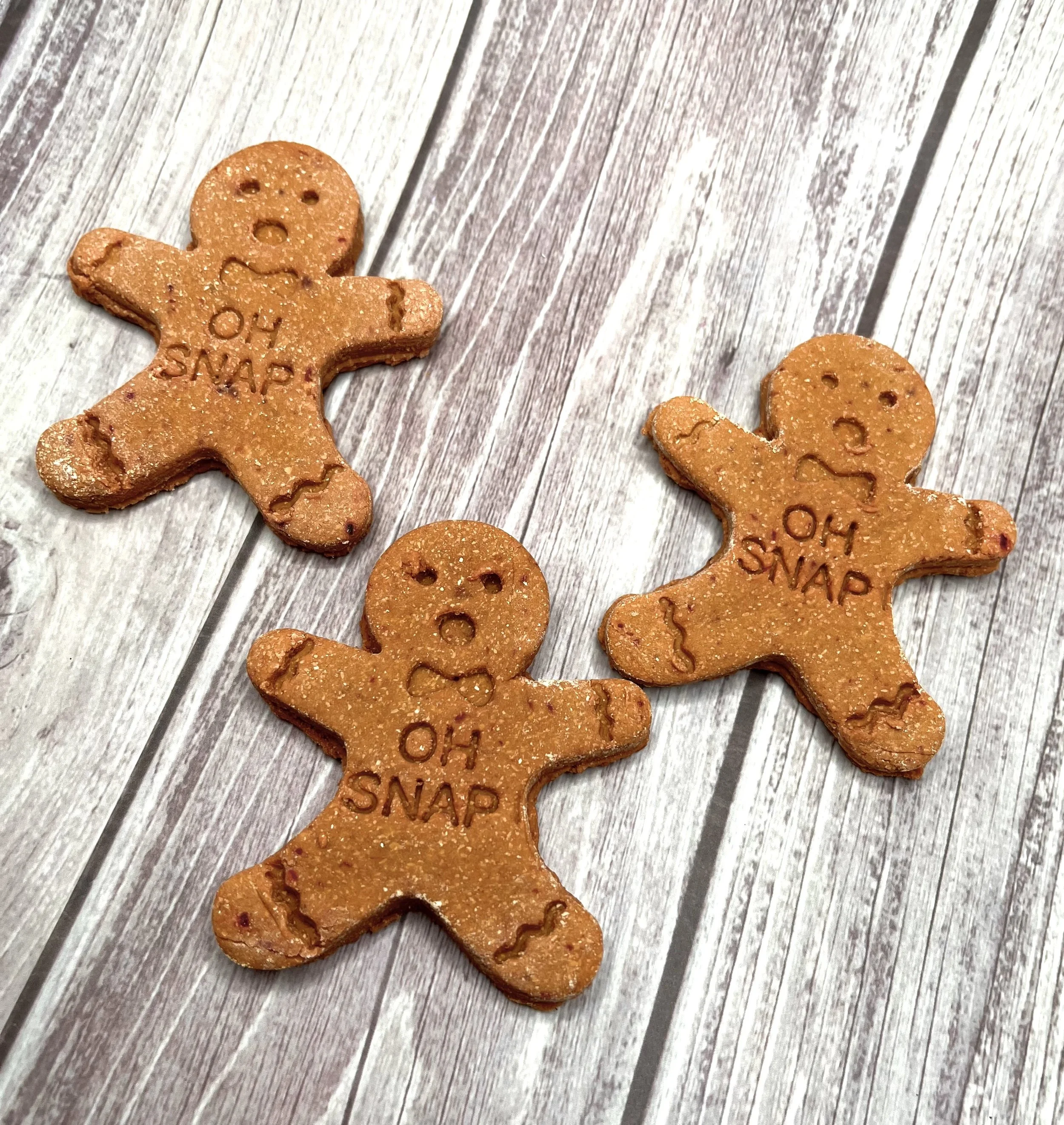 "Oh Snap!" This or "crunch" is the sound you will hear when your dog takes a bite of these adorable grain free gingerbread men this holiday season! Give them to co-workers with dogs, your dog's veterinarian, dog walker, pet sitter or any dog lover. They are bound to get a kick out of these festive cookies! The dog will love the taste!