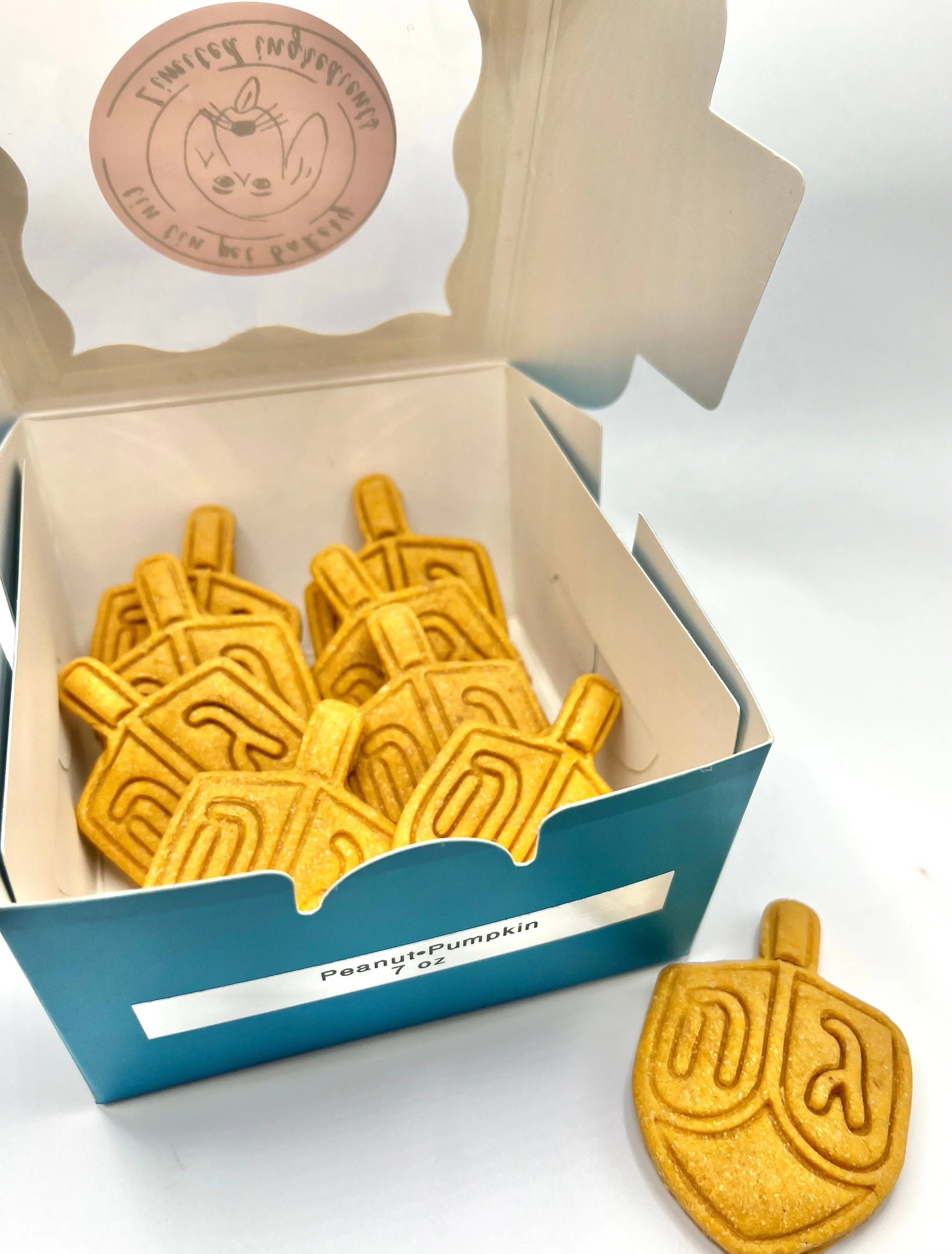 Happy Chanukah! Dreidel's for your pup? Now they can be included in the festivities. These tasty dreidels will have your dog dancing high for more! Hand crafted with grain free ingredients including unsalted peanut butter and organic pumpkin these treats are sure to win over the gift recipient!