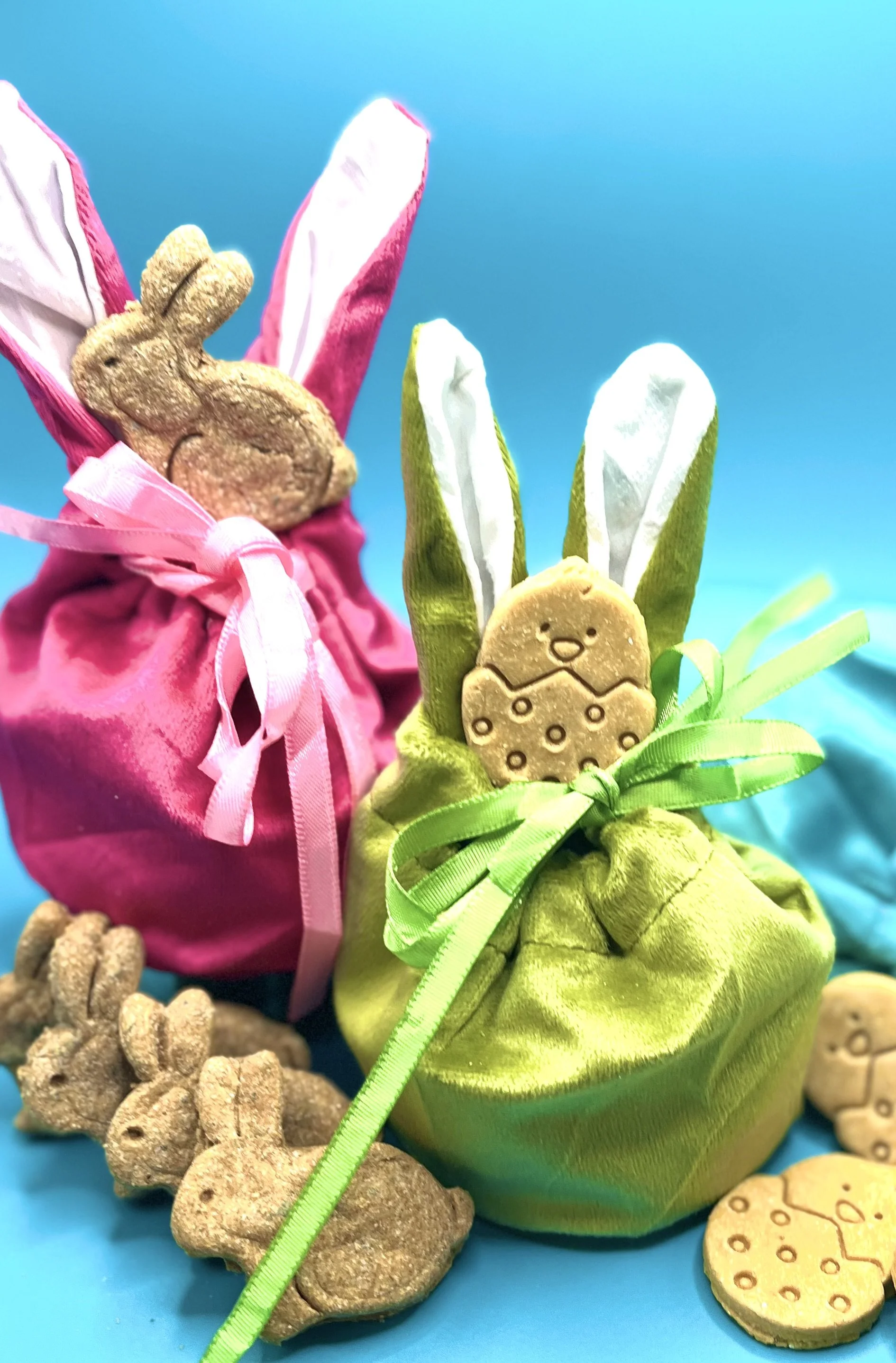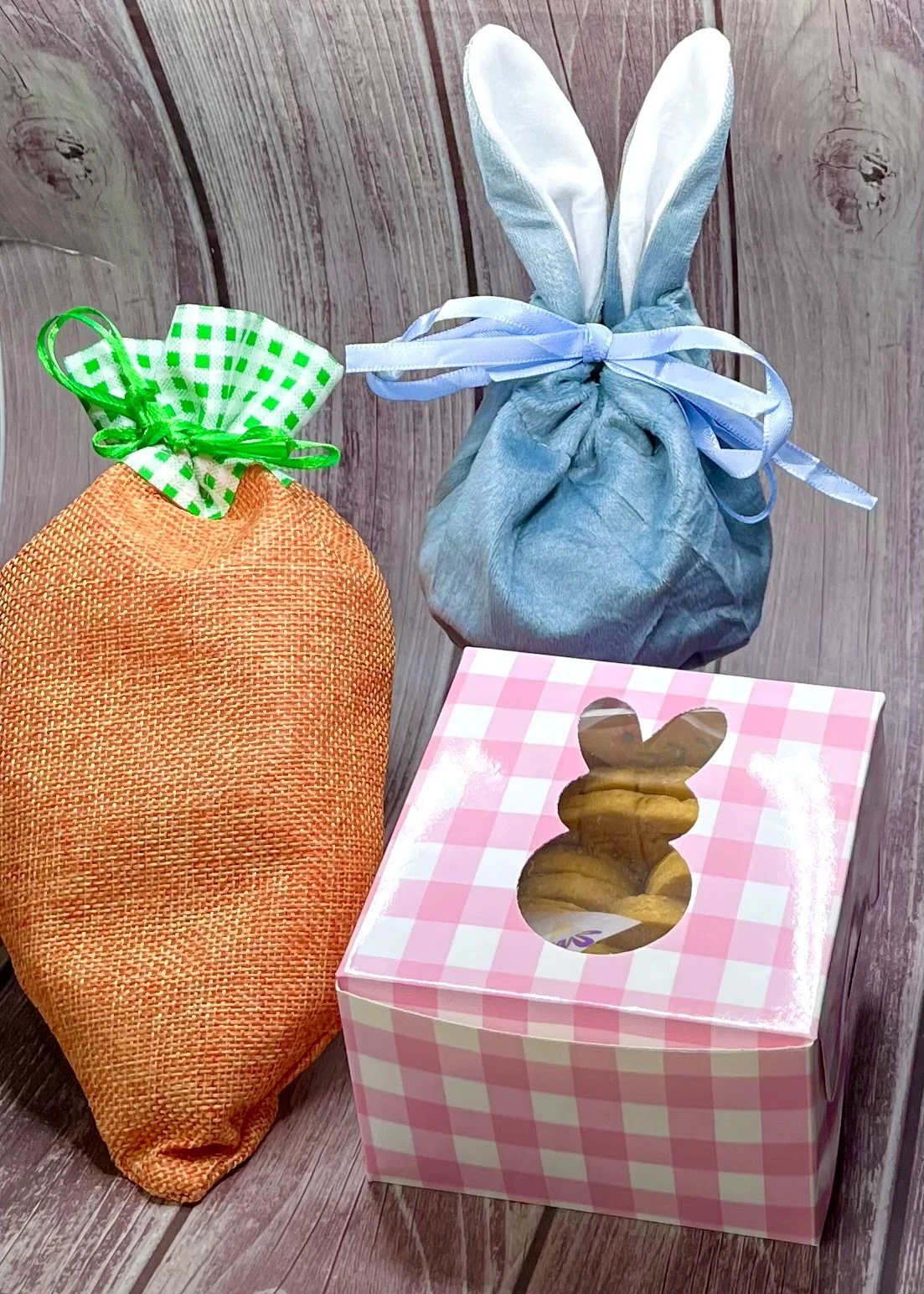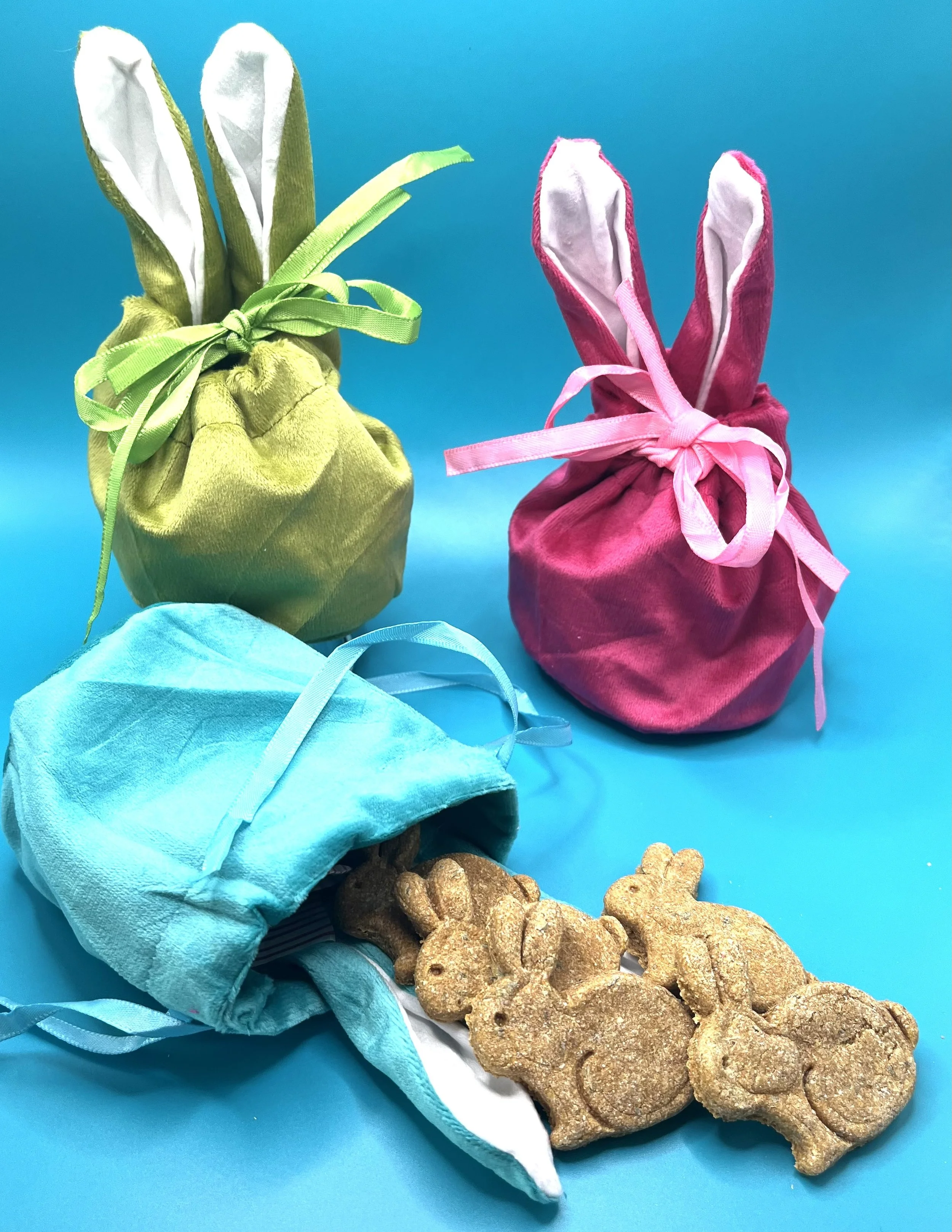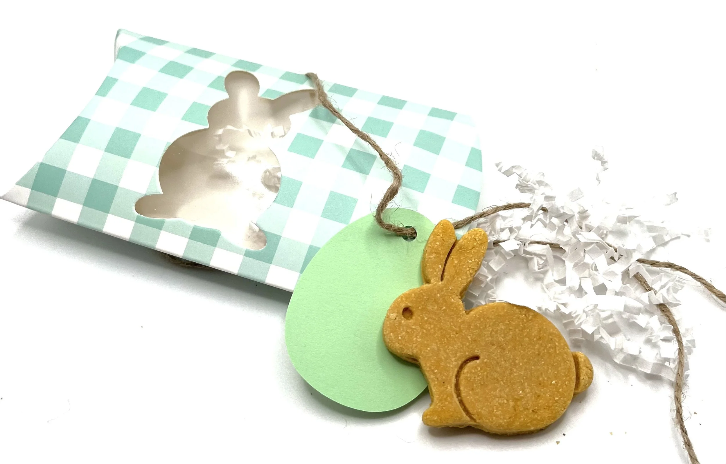 Individually wrapped bunnies are the perfect holiday Easter gift! Baked with fresh organic healthy ingredients that your dog will love! Get ready for your dog to hop on over to open the best surprise for your eager pup!