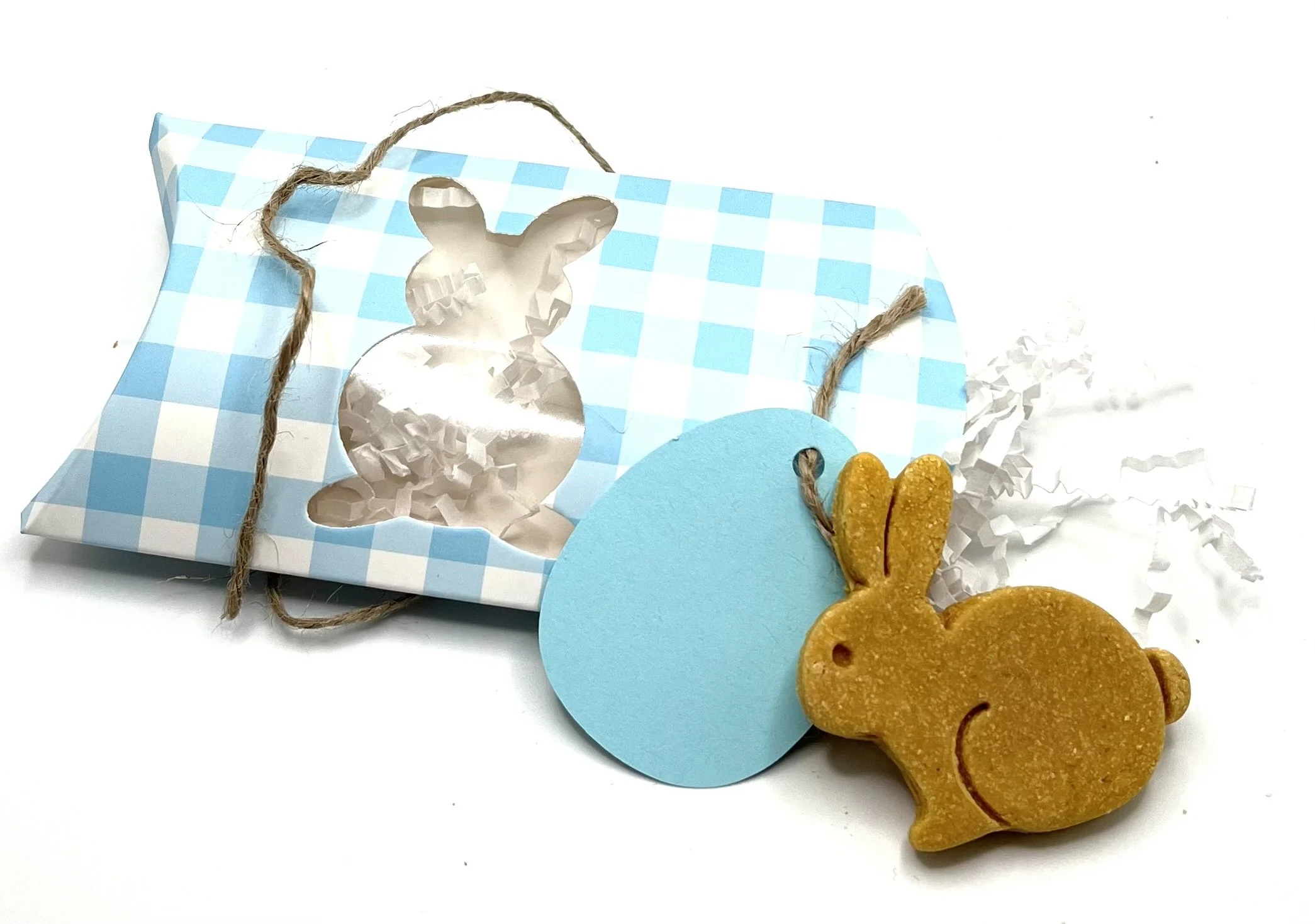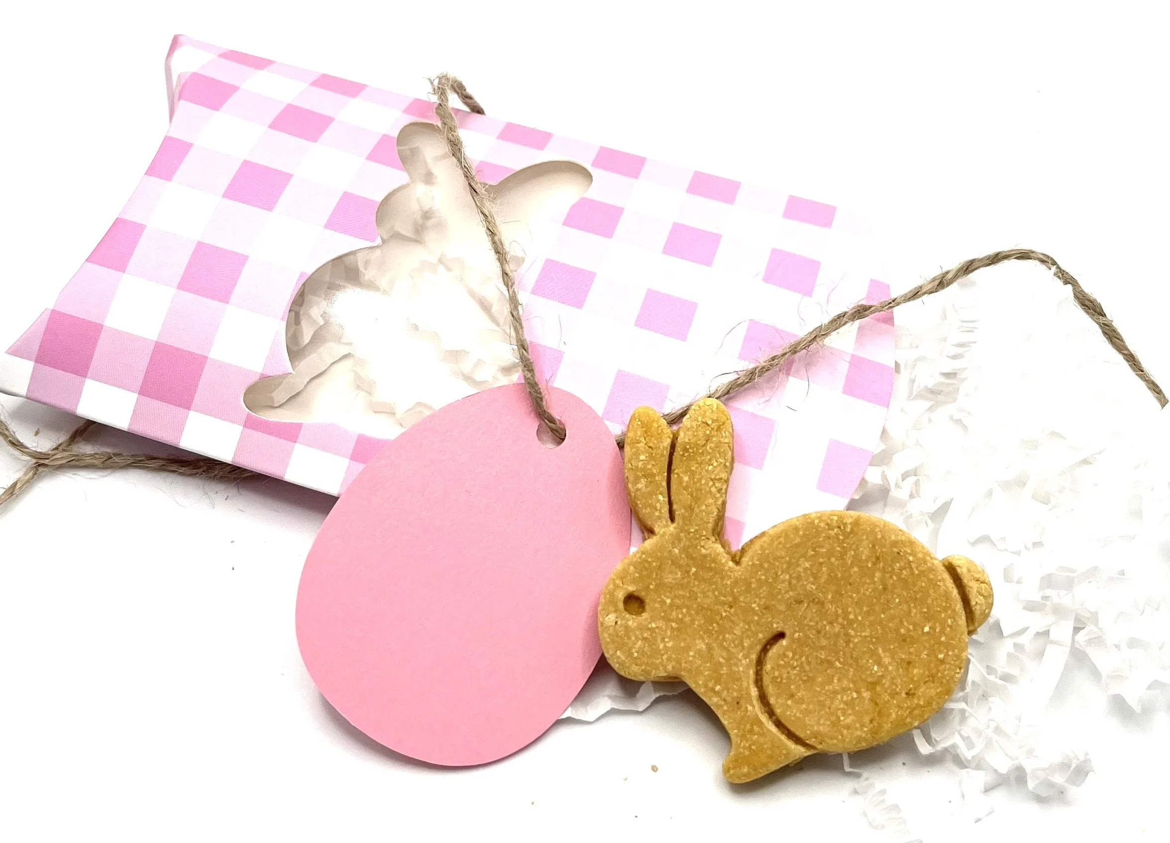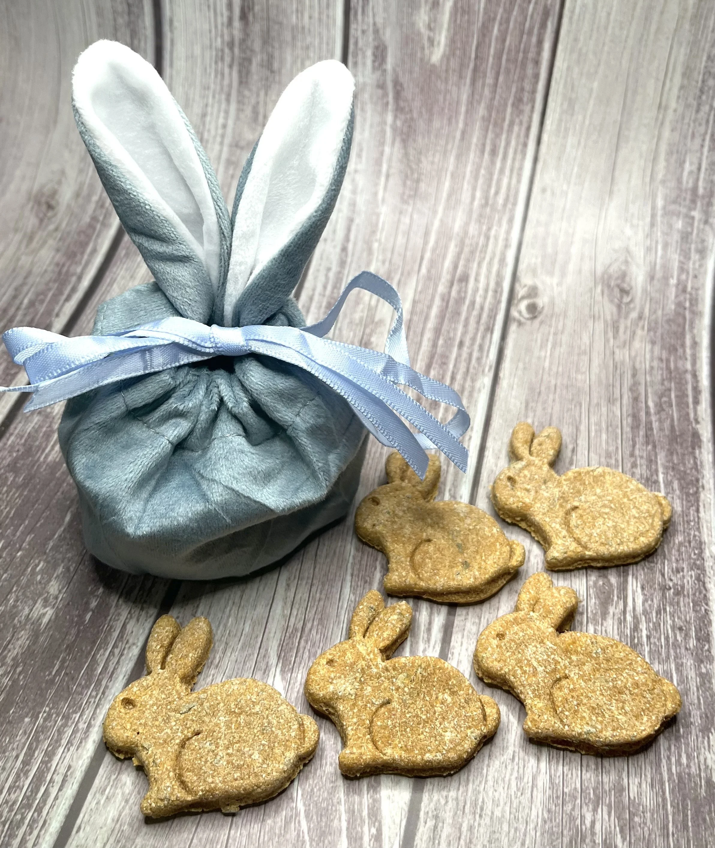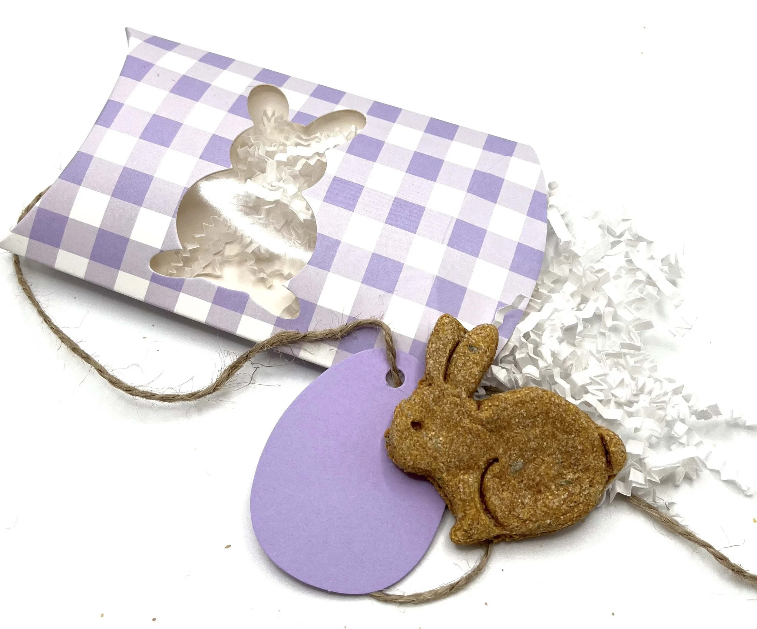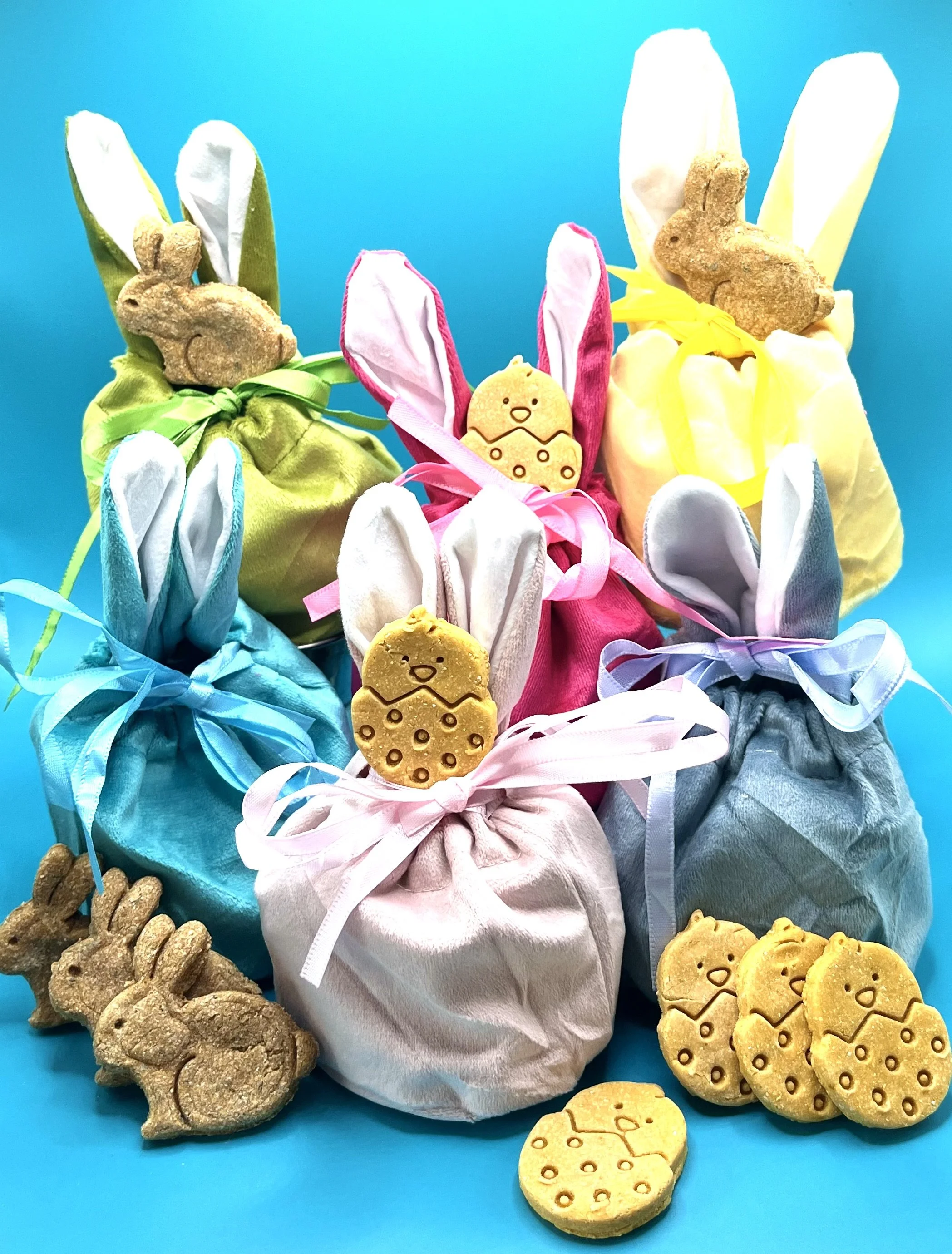 Individually wrapped bunnies are the perfect holiday Easter gift! Baked with fresh organic healthy ingredients that your dog will love! Get ready for your dog to hop on over to open the best surprise for your eager pup!