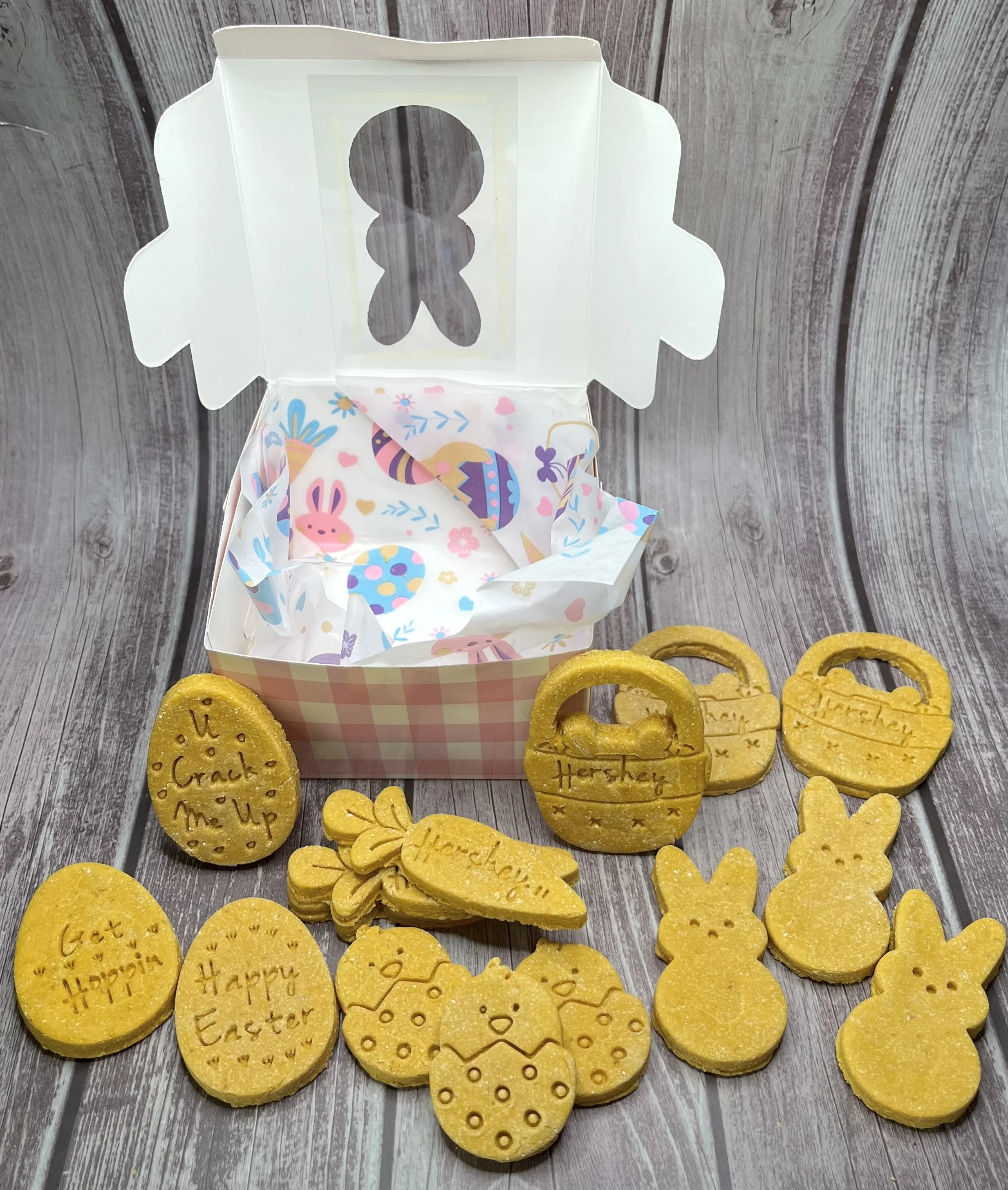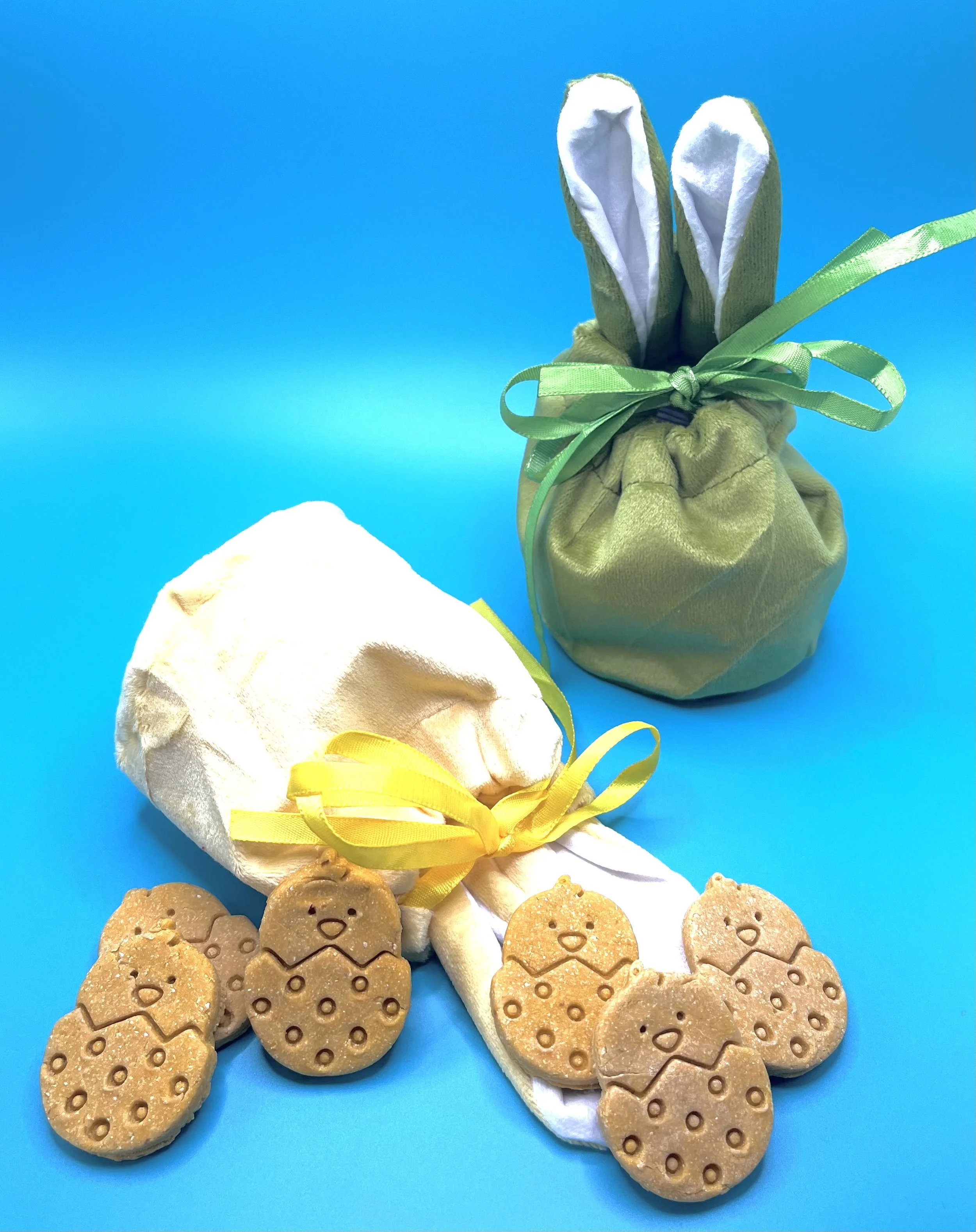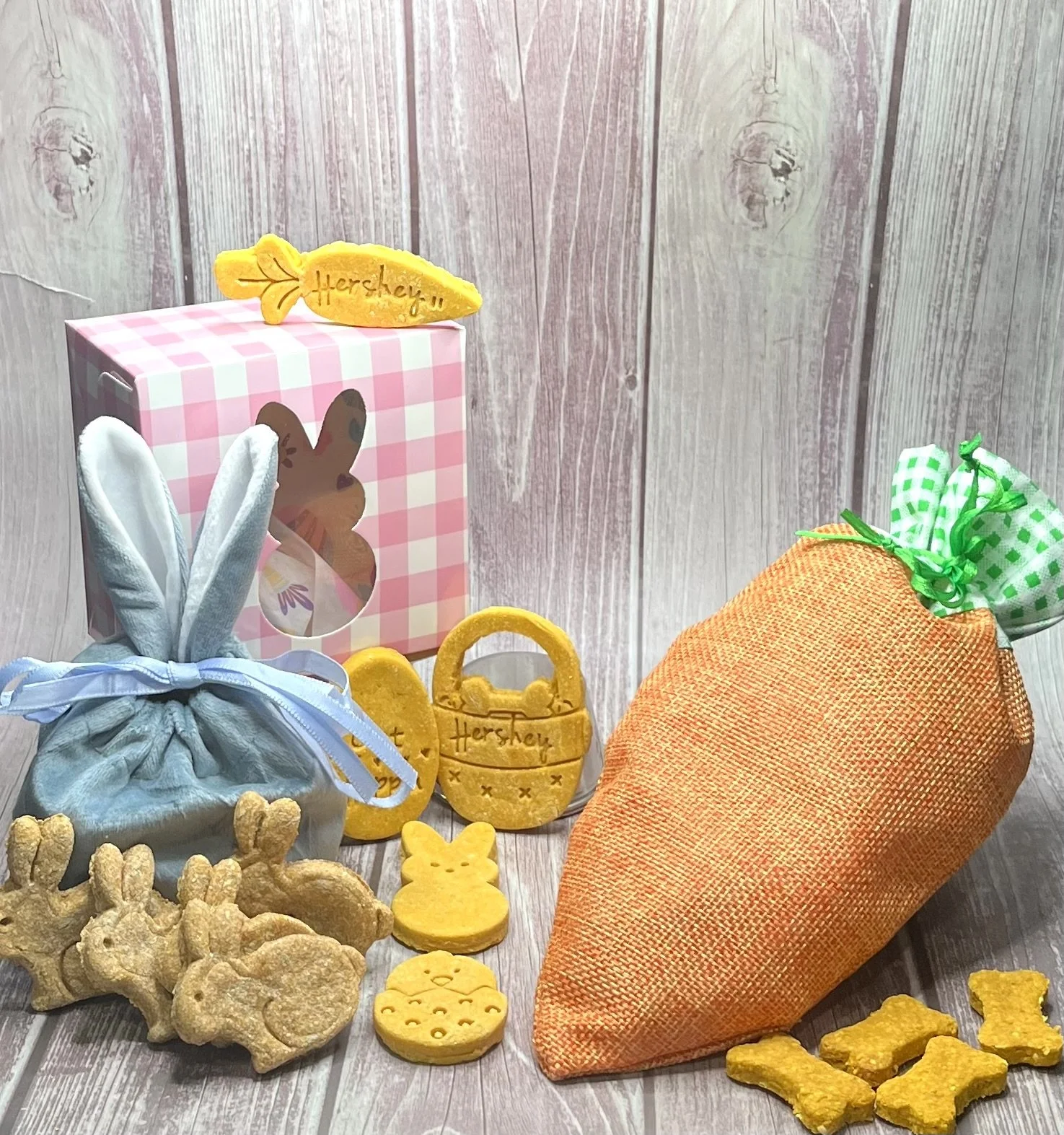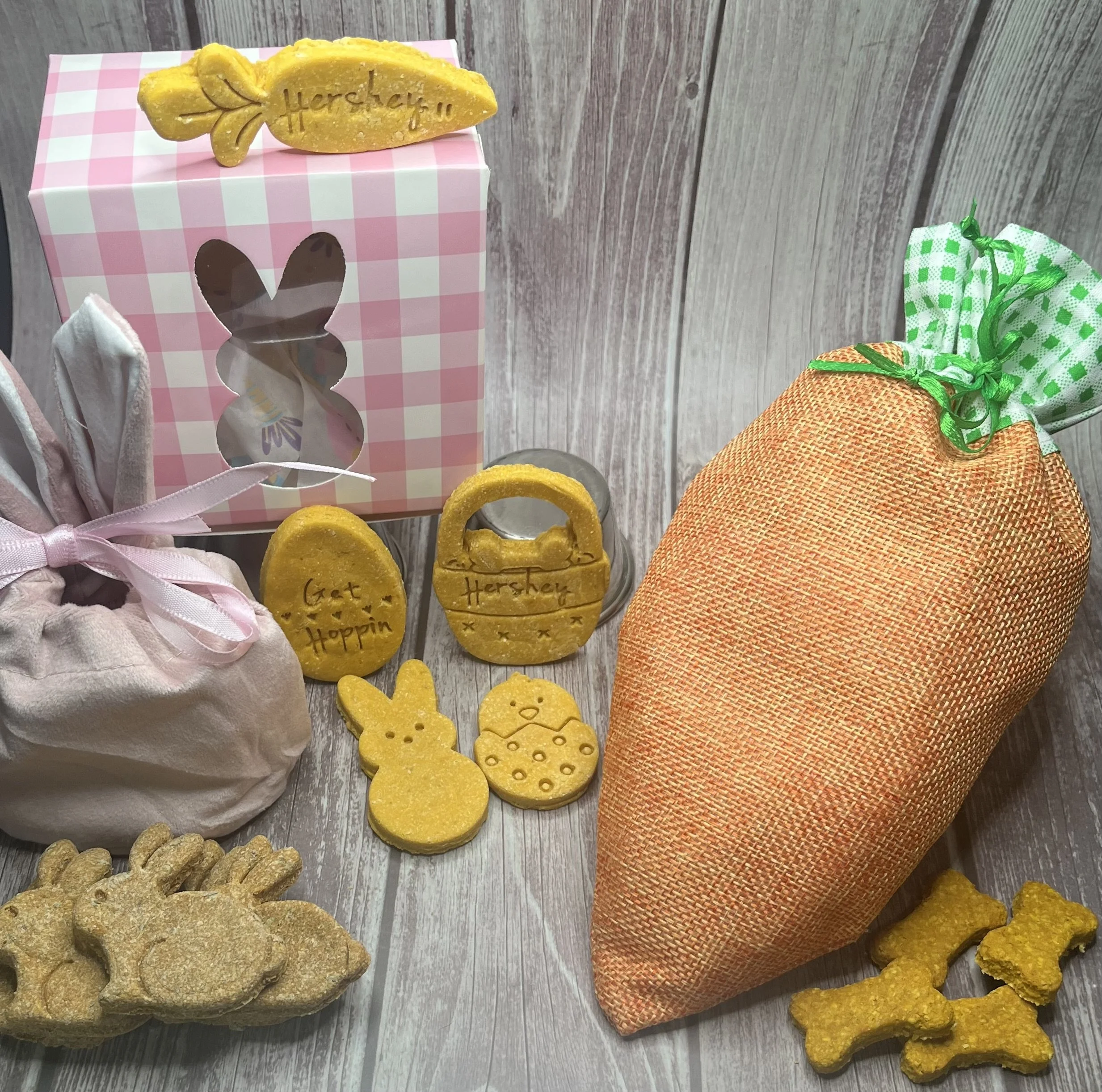 Individually wrapped bunnies are the perfect holiday Easter gift! Baked with fresh organic healthy ingredients that your dog will love! Get ready for your dog to hop on over to open the best surprise for your eager pup!